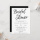 Handskriven modern minimalist bröllopsdusch-inbjudan - Denna enkla, minimala och chic svart-vita bröllopsdusch-inbjudan är perfekt för bruden som söker en elegant och tidlös bröllopsdusch-inbjudan. Med vacker typsnittsstil och klassisk estetik. Anpassa denna redigerbara bröllopsdusch-inbjudan mall med dina egna evenemangsuppgifter. Perfekt för vår-, sommar-, höst- eller vinterbröllopsduschar, inomhus- och utomhusbröllopsbrunch och bröllopste-partyn. Finns tillgänglig i tryckt version eller som en direkt digital nedladdning; enkelt skicka via sms, e-post eller sociala medier.