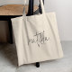 Enkel, stilren och trendig shoppingväska i en modern handskriven stil i en skandinavisk 'scandi' minimalistisk designstil. Denna produkt kan enkelt anpassas med ditt namn eller namnet på en nära och kära för en perfekt present till en födelsedag, möhippa, bröllop, jul och mycket mer!