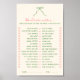 Den här möhippan för korallets rosa och grönt "skulle hon hellre vilja" i spelet lakan har en liten föreställning om grönt i hand plockade och ett handskrivet typsnitt för avslappnaden.