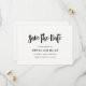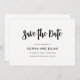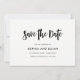De här enkla, svarta och vita bröllop spara datum-korten har edgy, modern manustypografi för en avslappnad än stil i tätort.