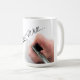 Fira handskriftskonsten med den här eleganten kaffe mugg med en hand-, penna- och skrivdesign. Perfekt för författare, konstnärer eller andra som uppskattar skönheten i handskrivna anteckningar.