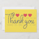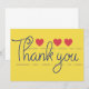 Tack för handskrivet teckensnitt med röda hjärtan på gultens bakgrund