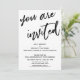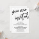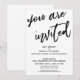 Denna svits utmärkande drag beror på det moderna, handskrivna typsnittet som används för accentfraser. I denna produkt användes det handskrivna teckensnittet för att skapa en grafisk framställning av orden "you are invited". Använd mallfälten för att lägga till dina personliga uppgifter och gör denna unika, moderna design till din egen. Den vita bakgrunden kan ändras till valfri färg du föredrar. Vänligen kontakta oss med eventuella specialförfrågningar eller för anpassningshjälp. // 100 //
