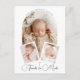Vår underbara dop-kort är en vacker souvenir som är utformad för att fånga det dyrbara minnet av ditt barns speciella dag. Detta kort har tre anpassade foton av din lilla: ett huvudfoto som visas i mitten inom en elegant vit valvram, med barnets namn visat högst upp i en graciös, halvcirkelformad teckensnitt.