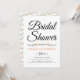 Handskriven typografisk persikoblomma, enkel blommigt bröllop inbjudningskort för möhippan. Den visar namn i ett kursivt skript med handskrivet stil typografi och två små korallpersikor med grönt löv. Baksidan innehåller ett blommönster.