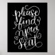 Handskriven välkomstskylt för att hitta din plats poster