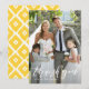 Stilfull tackkort med vit handskriven kalligrafi och gul ikat diamantmönster. Detta platta kort är perfekt för bröllop tack eller examens tack. Du kan anpassa bilden, texterna och baksidans mönster. En vykortversion finns också tillgänglig.