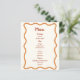 Den här utformningen har en enkel, vismisk, handdragen stil vågigt gräns. Det teckensnitt som används för huvudtexten är avslappnad och leksak, med en handskriven kvalitet, ge en personlig, intim beröring. Använda den här designen om du vill prioritera en vänlig och lättillgänglig vib till bröllop framför formalitet.