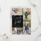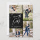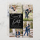 Ta din 5 bästa bilder från förlovningens fotosession med 4 för framsidan och en för baksidan. Den har en handskriftssymbol som säger Spara datumet.
