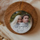 Första julens moderna handskrivna Förlovning Foto Ornament. 2 fotojulprydnadsföremål.. helgdag. Gör en underbar gåva eller familjesammans. Klicka på knappen Redigera om du vill anpassa designen med foton och detaljer.