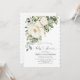 Modern design och elegant med vattenfärgade vita gräddblommor på vit, elegant "babydusch"-kalligrafi med dekorationer; på den vita blommigten krans i hjärtform, initialer, allt på vit bakgrund. Matchande objekt finns i min Blommor Bloom Collection.