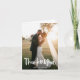 Ett modernt tack från bröllop är ett kort som innehåller ett handskrivet skript och ditt foto på framsidan och det tomma utrymmet på insidan så att du kan skriva ditt meddelande för hand.
