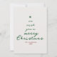 Handskrivet julkort med ett Julgran tillverkat av helgdag önskemål: Vi önskar er ett god jul i skript, i grönt på den äggvita bakgrunden. Under träd finns din familj namn och år och däröver, en liten stjärna. På motsatt sida visas ditt favoritfoto och din anpassningsbar i samma handskrift. Anpassa den via knappen "Anpassa". Den här utformningen är modern och minimalistisk med en vintage-vrid.