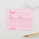 Kort för Rosa av chic och Möhippa med rött recept Lägg till en personlig beröring till möhippan med dessa vackert designade recept på ett chicens rosa och röda tema. De här korten har ett charmigt handskrivet stil-teckensnitt och är perfekt för att samla in hjärtliga recept och matlagningstips från vänner och familj. Varje kort ger gott om utrymme för att kasta ner ingredienser, instruktioner och speciella anteckningar, skapar dem som en keepy som den blivande bruden kommer att uppskatta för evigt. Oavsett om du är värd för en modern eller klassisk möhippa passar de här receptkorten sömlöst in i firande. Perfekt för en möhippa som är tematisk för köket eller som en del av en unik gåva, den här kortens dubbla som en meningsfull aktivitet och ett bestående minne. Koppla ihop inbjudningar eller dekoration för en snyggt, sammanhängande utseende. Skapa minnen och bevara traditioner med den här elegantens recept-kortdesign!