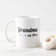 Skapa en älskling för farmor med det här dekorativa hjärtat som understryker ditt uttalande från baby till mamma/Personalize med det år du gav henne första barnbarn. Handskrivande skript modern svart typografi. Köp tillsammans med matchande morfar-est... mugg. Gör en underbar Mors dag eller gravid-annonserbjudande.