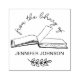 Denna vackra bibliotek bok frimärke har en elegant runt form med texten "från bibliotek av" i handskrivet skript och ditt eget namn i enkel modern typografi med en handritad blaj gren nedan. I mitten finns en vacker illustration av ett öppet bok. Anpassa den via knappen "Anpassa".