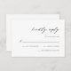 Det här handskrivna skriptet Simple Modern Bröllop OSA-kortet är perfekt för par som vill ha ett rent och elegant och leta efter bröllop. Utformningen har ett svart och vitt färg-schema med minimalistisk beröring. Kortet har en enkel och lättläst design som gör det enkelt för gästerna att svara. I designen ingår en kombination av klassisk serif typsnitt och ett handskrivet calligraphy-skriptteckensnitt, som lägger till en personlig och klasslig tryckning. Det är perfekt för par som är tittar för ett sofistikerat och boho-chic-responskort från stil bröllop som kommer att matcha vilken säsong som helst bröllop, oavsett om det är sommar, vår eller vinter. Det här kortet är enkelt att anpassa, klicka bara på "Anpassa" och ange dina uppgifter. Glöm inte att checka ut resten av samlingen för matchande objekt.