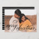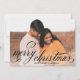 Helgdag-fotokort har ett svart, handskrivet calligraphy-skript som täcker över designen med anpassningsbarnas moderna serif-text som kan vara personlig med året och din familj/namn. Kortets baksida innehåller abstrakt vit vågrät rand med svart bakgrund.