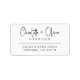 Par handskrivet skript namn returnerar adressetikett i svartvitt. Enkla skript- och serif-typografi.