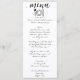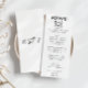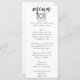 En färglös funky, en modern meny för peach gult bröllop. Med chicens malldesign för bho-vintagens vita bakgrund och svarta typografi och handskriven meny i svartvitt. Och vit bakgrund med hand plockade hjärta i kärlek på baksidan med bruds och brudgummens initialer. Perfekt och matchning med hela sviten.