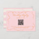 Ett enkelt och elegant kalligrafiskt färgat bröllop OSA-kort. Som ni ser har den en modern rosa-bakgrund i vintage med handskrivet skript i orange i hand plockade ram. Och rosa och krämhand målade streck på baksidan. Och anpassade QR-kod så att inbjudan kan osa online. Du kan redigera den genom att klicka på knappen för anpassning.