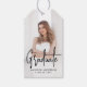 Lägg till en märkre för personlig i studentfestens favoritsäckar och lådor med de här märkrna för fotopresenter från studenten! Studenten-förmånstaggen innehåller lodrät student med fullt-utfall med "Student" som visas i ett handskrivet svart skriptöverlägg. Anpassa studenten-favorittaggen för fotot till student namn och studenten. Märkrn återgår till visning av en helsvart bakgrund med utrymme för ytterligare foton och text. Detta moderna studenten-favoritmärke är perfekt för högskoleexamen och högskoleexamen!