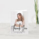Skicka ett hjärtligt tack till vänner och familj med våra moderna fototackkort från studenten! Kortet innehåller fullt-utfallsfotot för lodrät med "Tack" som visas i ett handskrivet svart skriptöverlägg. Anpassa fotot-tack-kortet från studenten med student namn och studenten. Insidan av kortet visningar ditt tack i svart skrift. Detta moderna tackkort från studenten är perfekt för högskoleexamen och högskoleexamen!