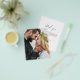 Budgetera Bröllop Handskriftlig tack Du kort som har ett foto på framsidan och baksidan. Tack-korten innehåller en modern, vit- och svart, kursiv skripttypografi som är elegant, enkel och modern till använda efter att du har minimalistisk enkel bröllopsdag firande.