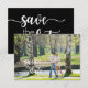 Vackert, svart text med texten "Spara datumet". Annan tillgänglig färg. Handskrivet fotoport för Bröllop spara datum. Gnistra & Glitter © på www.zazzle.com/sparkleandglitter*.
