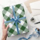 Sofistikerade pappra inslagningsfunktioner mörk grönt, vita och ljust grönt fyrkanter i ett fet diagonalt, kontrollerbart utförande. Den stiliga grönten och vita gingham mönster skapades från början.