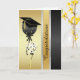 Snyggt studenten hälsningskort, med svart, guld-färgat och silver glitter-metallisk utseende, med grafik på finare festila ballonger, med ett student pantarboard-lock. Svart text står, Grattis springa lodrät, längst fram på kortet. Anpassa hälsning på insidan för att läsa vad du vill. Ta med dig studenten-kortet till student som är din favorit.