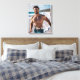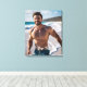 Innehåll har en stilig muskulär man på en vit sandstrand.