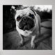 Svart och vitt fotografi av en mycket stilig pug med stort glansigt brunt ögon. Underbar gåva till dig själv eller älskare i ditt liv.
