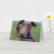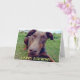 Fotografi av mitt rädding rött doberman hälsning-kort. Texten på framsidan lyder "Grattis på födelsedagen!" och texten på insidan lyder "Hoppas du har en underbar dag!" Text kan vara personlig.