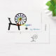 En lämplig spindel hänger från ett snurrande hjul på den här unika affärskortet för fiberkonst. Designad för fibersnurrande artist, det här affärskortet dubblor som en garnID-märkre för att fästa på avslutat produkter. Enkel att anpassa och en professionell för perfekt som berör alla dina projekt. Originalteckning och design av Night Uggla Menagerie, 2011.