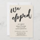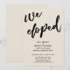 Denna svits utmärkande drag beror på det moderna, handskrivna typsnittet som används för accentfraser. I denna produkt användes det lediga, handskrivna teckensnittet för att skapa en grafisk framställning av orden "we eloped". Använd mallfälten för att lägga till dina personliga uppgifter och gör denna unika, moderna design till din egen. Bakgrunden kan ändras till valfri färg du föredrar. Vänligen kontakta oss med eventuella specialförfrågningar eller för anpassningshjälp. // 100 //