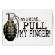 Framåt, går handtag mitt finger. För mest är dra av det another fingret, speciellt om det är pappan eller även, en uncles den enfaldiga pottahumorn som resulterar ofta i endast en fis som ska orsakar säkert några fniss och kanske även utbredd laughter. Vårt handtag min fingerdesign presenterar ett gammalt räcker granaten med klassikerslogan. Varna: Akta sig personen som ha på sig denna utslagsplats, som du har förvarnats som en unimaginable explosion av otäckt ska säkert betaget dig bör dig avgöra till handtag, som fingrar.
