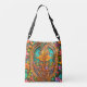 En blomsterdesign i nyanser av turkos och orange täcker denna vackra handväska.