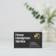 Ett täcke av svart timmer accentueras av en vit lodrät nära kortets bas. Här ljuger du ditt prestigefyllda namn och kontaktuppgifterna. Ovanför det här är den faux guld hammer-logotyp du kan använda. I motsatt riktning är arbetsnamnet "hemtjänst" som du kan byta till kostym för dina behov. handymannen kan ändras till "hemtjänst".