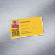 En gyllene gult bakgrund. Anpassa och lägg till Ditt foto, namn, text, kontaktinformation och din egen URL till webbplatsen eller ditt mediekonto i social till QR-koden. Svart text.