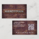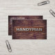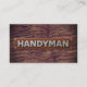 This **Handyman Repair Service Business Card** is designed with a rich brown wood background that gives it a warm, rugged, and professional look. The front features a realistic wood‑grain texture that feels sturdy and handcrafted, perfect for representing home repair, maintenance, and contractor services. Centered on the design is the bold handyman word in metallic silver metal texture. The combination of natural wood tones and a clean professional logo creates a trustworthy, down‑to‑earth aesthetic that appeals to clients looking for reliable repair work, home improvement help, or general contracting services.