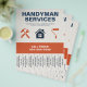 En professionell handyman tjänster folder design med avrivbara flikar i marinblå och orange färger med illustrationer som inkluderar ett hus, hammare, skiftnyckel och målarrulle. Eftersom den är helt anpassningsbar kan den vara idealisk för en mängd olika reparationsuppgifter, inklusive snickeri, målning, VVS, elektricitet, handyman och hemreparationsservice.