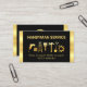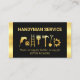 Ett svart skydd inkapslas av guld rand på det lämnat och höger gräns på kortet. Den har en verktyg motiv i guld handyman nära centrum. Verktyg kan representera några av de tjänster som ni kan erbjuda. Över överst finns namn med kontaktuppgifter och ditt prestigefyllda namn nära kortbasen. Omvänt är guld hammarens logotyp som du kan använda, överst. Detta följs av er prestigefyllda namn, kontaktinformation och ett sloganalternativ för att publicera dina tjänster. Alla bokstäver är i Faux guld. En underbar utformning för alla till användan, särskilt för bygg- och handyman företag. #handyman #homerepairprovider #handymanTools #building #building #building #remodeling #building #buildingester #homerepair #roofing #generell entreprenör #zazzlemade