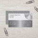Handymanvisitkortar med metallisk tittar bakgrund för silver som skrivs digitalt ut på bekläda med cirkelsågbladsymbol och textorienteringen som du kan lätt skräddarsy och personifiera för att passa din affär. Designat för konstruktions- och handymanbranschen.