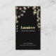Guld-strängen ljus hänger nedåt från det här mångsidiga, träffande svarta affärskortet. Underbar för en ljusdesigner, en evenemangsplanerare eller till och med en skönhetssalong. Tillgängligt med matchande produkter.