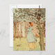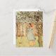 Vintage-teckningar som visar en ung kvinna som hänger ut tvätt för att torka på linjer som ligger mellan träd grenar