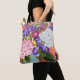 Detta all över - tryck 16" x 16" totot hänger lös särdrag en blom- målning för akryl, "irisen och vänner" av Becky Schultea, som inkluderar en vas för vintageturkosenamelware som fylls med en färgrik bukett av djupt - purpurfärgade irises, vit- och rosavanlig hortensia och blandat andra lite ljusa blommor. Detta skulle är perfekt för marknadsföra, arbeta i trädgården centrerar, en resa till idrottshallen, som en skola hänger lös, eller att bära dina essentials precis omkring någonstans. Det skulle gör också en underbar gåva för någon som uppskattar färgrika stugablommor med vintagehandlag.