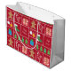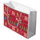En stor gåva hänger lös byggt med ett mönster med några julsymboler på röda rektanglar. Du kan redigera och sätta din egna ord. God jul!