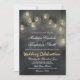 Hanging Edison Light Lökar Ljus Vintage Chalkboard bröllopsinbjudningar. Bakgrunden är en mörk med tryckta svarta tavlor med utplånade kritmärken på den. Ljus hänger uppifrån inbjudan. Dessa är underbara för ett land eller vintage som kallas bröllop. Lägg bara till din egen bröllopsinbjudan till den enkla mallen. Matchande objekt: