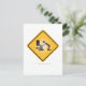 Lodrät-kort med en varningstecken för gult för någon som kommer på samma sätt när han eller hon har en baksmälla på vit bakgrund.
